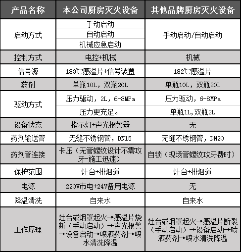 注:平时灶台热量达不到感温探测器熔断的温度不会造成误喷。即使误喷本公司产品设置2秒内紧急按钮防止误喷功能,此功能在同行业较领先。